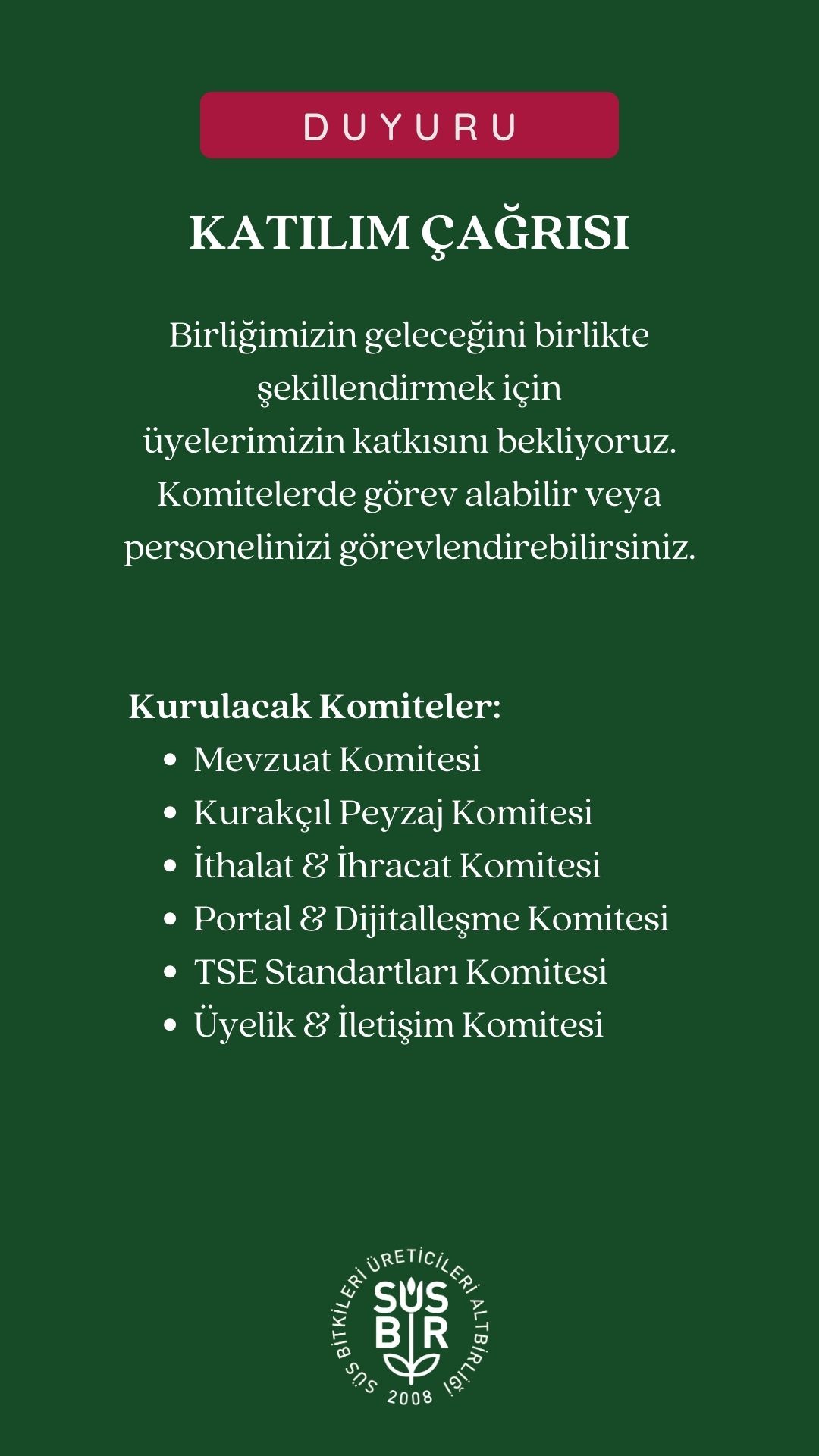 Bu doğrultuda, Birliğimizin daha üretken ve dinamik bir yapıda çalışmalarını sürdürebilmesi için katılımcı bir bakış açısıyla “Çalışma Komiteleri” oluşturmayı planlamaktayız.