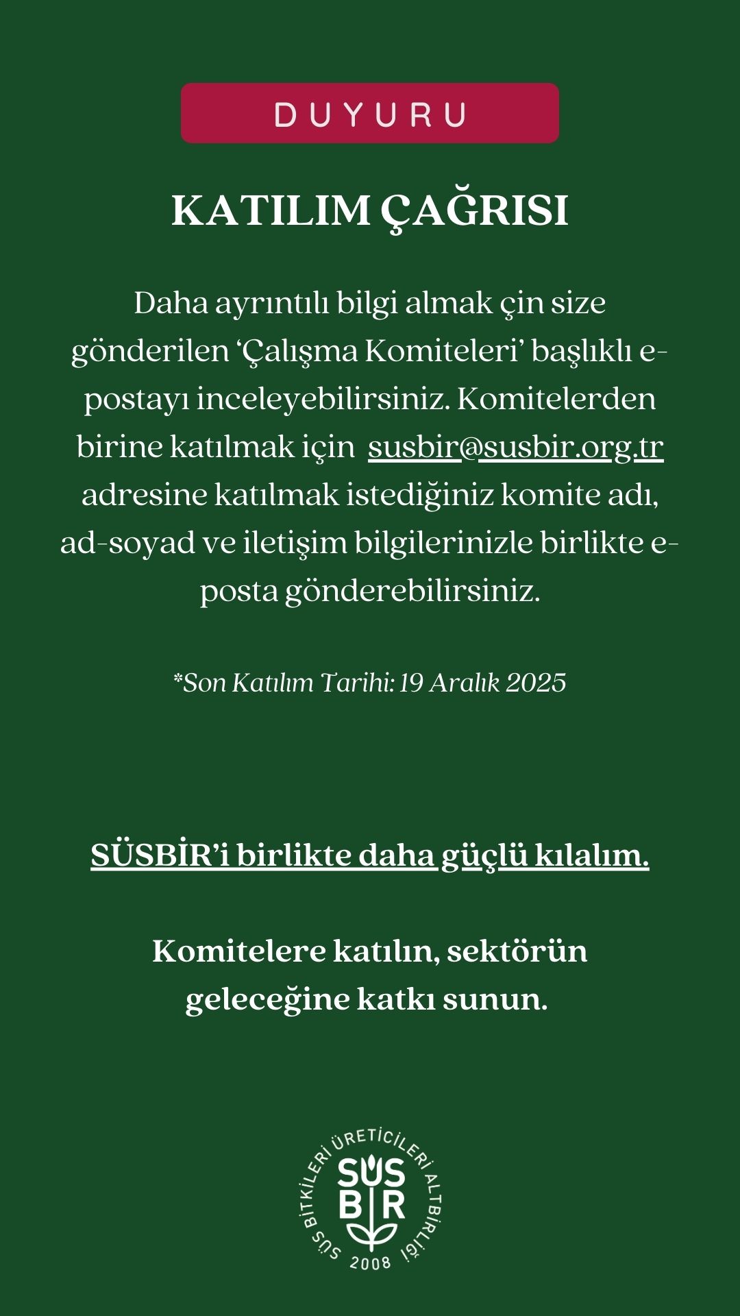 Aşağıda belirtilen Komitelerden görev almak istediğiniz alanları belirleyerek, 19 Aralık 2025 Cuma günü mesai bitimine kadar “Firma Adı, Katılımcı Adı-Soyadı ve İletişim Bilgileri” ile birlikte This email address is being protected from spambots. You need JavaScript enabled to view it. adresine iletmenizi önemle rica ederiz.
